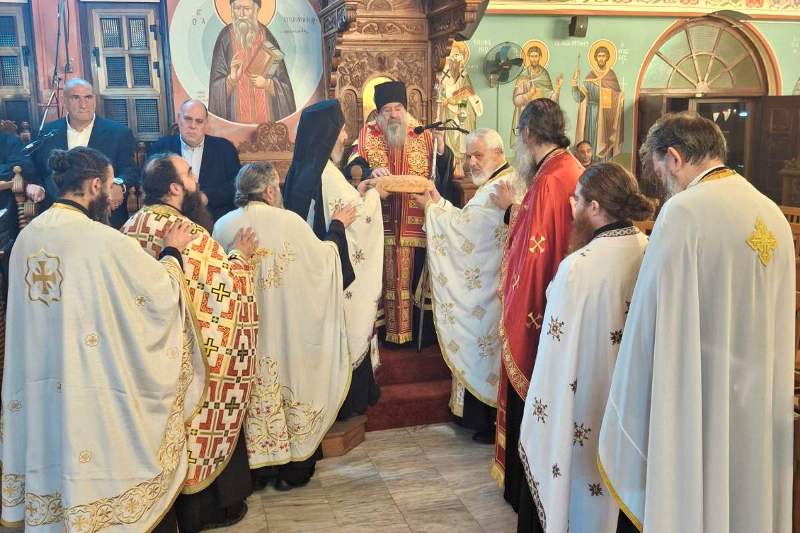 Στον πανηγυρίζοντα ιερό ναό του Αγίου Γεωργίου Χαβούζας, χοροστάτησε της ακολουθίας του Εσπερινού, ο Πανιερώτατος Μητροπολίτης μας κ. Αθανάσιος. Προ του τέλους του Εσπερινού χειροθέτησε σε πρωτοπρεσβύτερο τον εφημέριο του ναού, π. Αλέξανδρο Γκόρτση. Την Κυριακή το πρωί προεξήρχε της Θείας Λειτουργίας ο Σεβασμιώτατος Μητροπολίτης Βόστρων κ. Τιμόθεος.