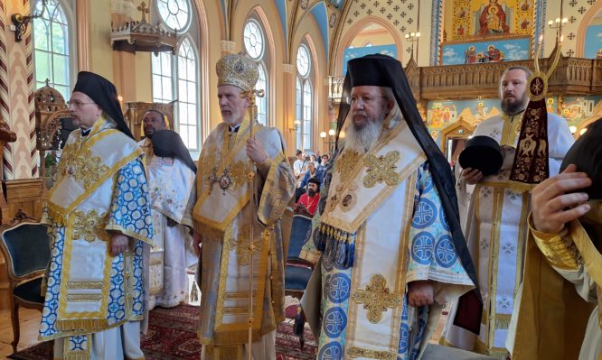 Το πρωΐ της Κυριακής, 26 Μαΐου 2024, πραγματοποιήθηκε Αρχιερατικό συλλείτουργο στον Καθεδρικό ΝαόΑγίου Γεωργίου Στοκχόλμης, προεξάρχοντος του οικείου Μητροπολίτου κ. Κλεόπα και συλλειτουργησάντων του Σεβ. Μητροπολίτου Κυδωνιών κ. Αθηναγόρου και του Πανιερωτάτου Μητροπολίτου Φαναρίου κ. Αγαθαγγέλου, με την συμμετοχή των επισκεπτών κληρικών, Πανοσιολ. Αρχιμανδριτών κ.κ. Δοσιθέου και Κορνηλίου, καθώς και τωνΠανοσιολ. Αρχιμανδρίτου κ. Βαρθολομαίου Ιατρίδη και Αιδεσιμ. Πρεσβυτέρου κ. Γεωργίου Αρβανιτίδη.