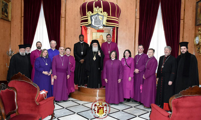 γ. Ὁμάδα δέκα πέντε Ἀγγλικανῶν Ἐπισκόπων ὑπό τόν Ἀγγλικανόν Ἐπίσκοπον εἰς Ἱεροσόλυμα κ. Χουσάμ Ναούμ καί τόν βοηθόν αὐτοῦ π. Ντόναλντ.