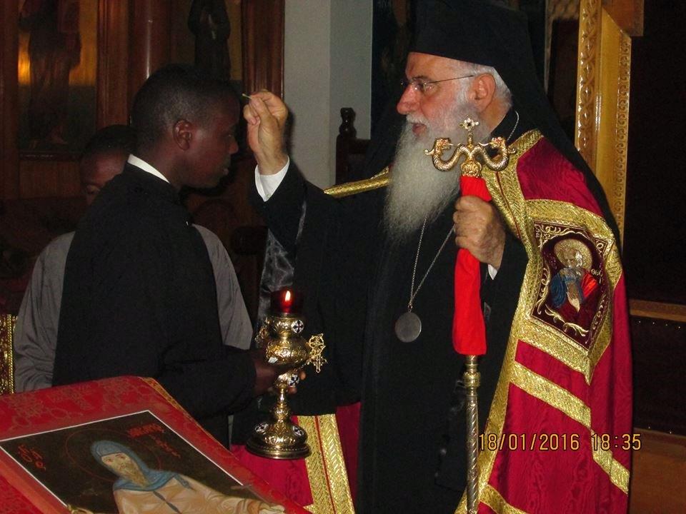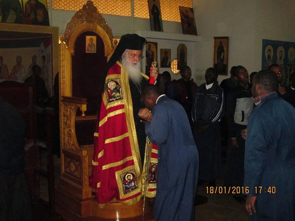Το απόγευμα της Δευτέρας, 18 Ιανουαρίου 2016, τελέστηκε από τον Σεβασμιώτατο Μητροπολίτη Κένυας κ. Μακάριο πανηγυρικός εσπερινός με αρτοκλασία στον ιερό ναό της Πατριαρχικής Σχολής «Αρχιεπίσκοπος Κύπρου Μακάριος ο Γ΄» στο Ναϊρόμπι – Κένυας.