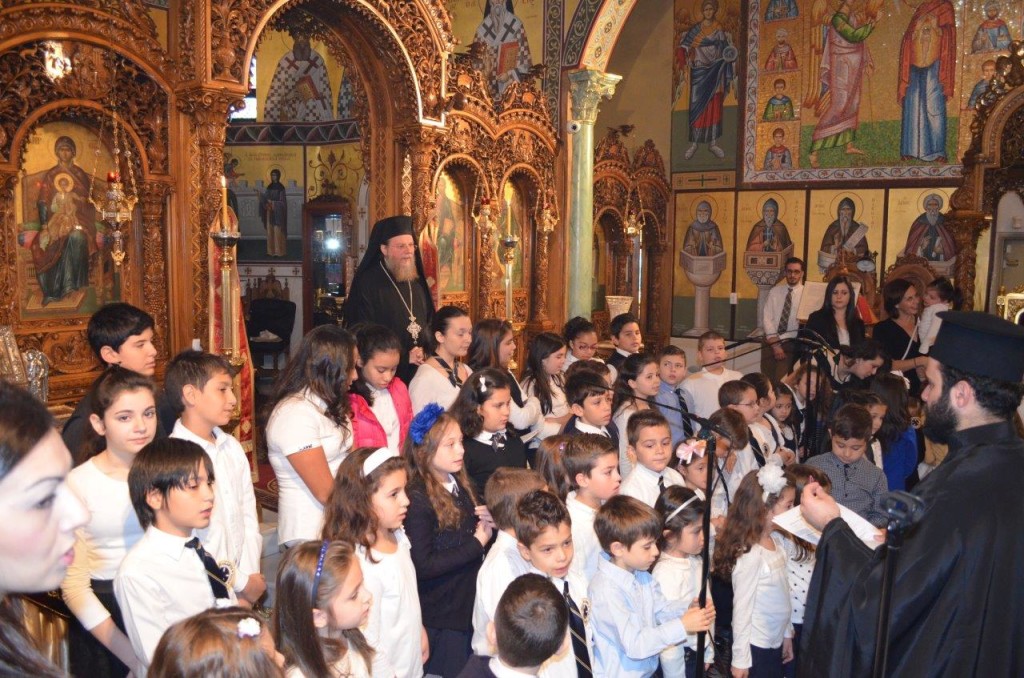 Χαρούμενες παιδικές φωνές γέμισε το καθολικό της Ιεράς Μονής της Οσίας Ειρήνης Χρυσοβαλάντου στην Νέα Υόρκη, που συγκεντρώθηκαν μαζί με τις οικογένειες τους για να τιμήσουν την εθνική επέτειο της 28ης Οκτωβρίου.