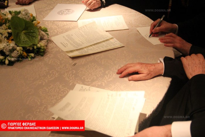Αφού έγιναν οι τελικές διορθώσεις και αλλαγές, το κείμενο υπογράφτηκε σε αίθουσα του ξενοδοχείου όπου καταλύουν οι Προκαθήμενοι. Υπέγραψαν όλοι εκτός των Αντιοχειανών.