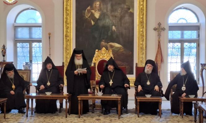 Τήν Δευτέραν, 7ην/20ήν Ἰανουαρίου 2025, ἔλαβε χώραν ἡ ἐπίσκεψις τῆς Ἁγιοταφιτικῆς Ἀδελφότητος εἰς τό Ἀρμενικόν Πατριαρχεῖον εἰς Ἱεροσόλυμα ἐπί τῇ ἑορτῇ τῶν Χριστουγέννων αὐτῶν ὡς ἀνταπόδοσις τῆς ἐπισκέψεως αὐτῶν παρ’ ἡμῖν. Ἐνταῦθα τόν Μακαριώτατον Πατριάρχην Ἱεροσολύμων κ.κ. Θεόφιλον καί τήν Ἁγιοταφιτικήν Συνοδείαν Αὐτοῦ ἐδέχθη ἐνθέρμως ὁ Πατριάρχης Nourhan Manougian μετά τῆς Ἀδελφότητος τῶν Ἀρμενίων. Τούτους προσεφώνησεν […]