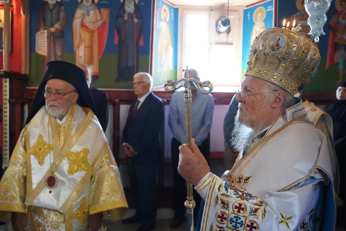 H A.Θ. Παναγιότης ο Οικουμενικός Πατριάρχης κ.κ. Βαρθολομαίος προεξήρχε της Θείας Λειτουργίας, την Παρασκευή, 23 Αυγούστου 2024, για την Απόδοση της εορτής της Κοιμήσεως της Θεοτόκου (Εννιάμερα), στον πανηγυρίζοντα Ιερό Ναό στο χωριό του, τους Αγίους Θεοδώρους Ίμβρου.