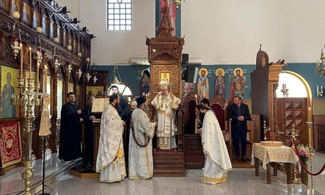 Προ της απολύσεως της Θείας Λειτουργίας χειροθέτησε σε πρωτοπρεσβύτερο τον εφημέριο του ναού, π. Παναγιώτη Ελπιδοφόρου