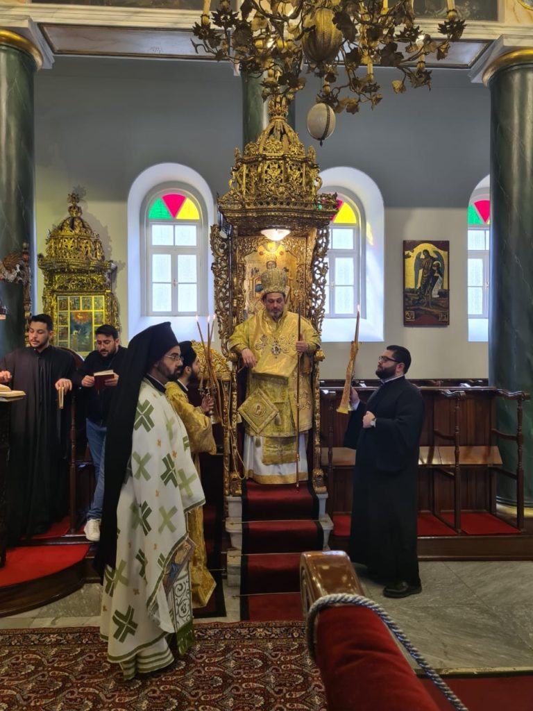 Σήμερα, Κυριακή Δ’ των Νηστειών, τελέστηκε ο Όρθρος και η Θεία Λειτουργία  στο ναό της Θεολογικής Σχολής της Χάλκης,  προεξάρχοντος του Καθηγουμένου, Θεοφιλεστάτου Επισκόπου Αραβισσού κ. Κασσιανού.