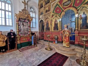 Στον πανηγυρικό Εσπερινό την παραμονή της εορτής και κατά την Θεία Λειτουργία που τελέστηκε ανήμερα το πρωί προεξήρχε ο Σεβασμιώτατος Αρχιεπίσκοπος Θαβωρίου κ. Μεθόδιος. Στην Αρχιερατική Θεία Λειτουργία συλλειτούργησαν επίσης, ο Δραγουμάνος Αρχιμανδρίτης π. Ματαθαίος, ο Πρωτοπρεσβύτερος π. Φάραχ, ο Αρχιδιάκονος π. Μάρκος και ο Ιεορδιάκονος π. Ευλόγιος.