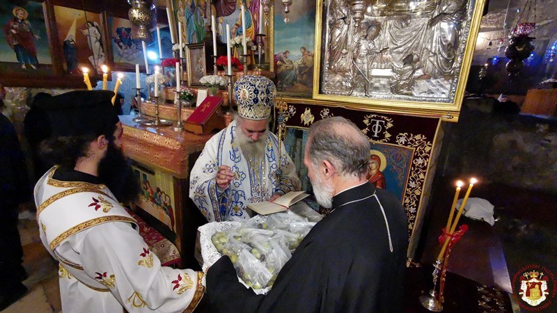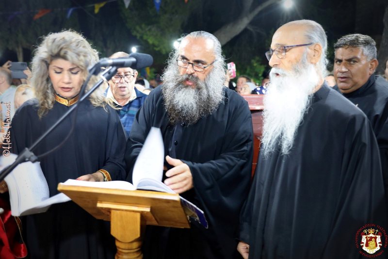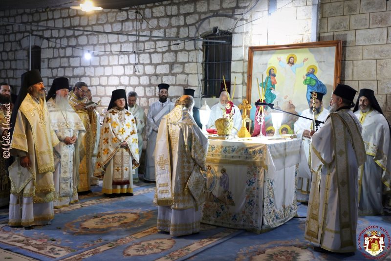 Ωσαύτως ετελέσθη πρωινή θεία Λειτουργία υπό του Σεβασμιωτάτου Μητροπολίτου Ναζαρέτ κ. Κυριακού εις τον ιερόν Ναόν τούτον, αγιογραφηθέντα εξ ολοκλήρου υπό του ρέκτου ηγουμένου Αρχιμανδρίτου π. Ιλαρίωνος, την δε μεσημβρίαν παρετέθη εόρτιος τράπεζα.