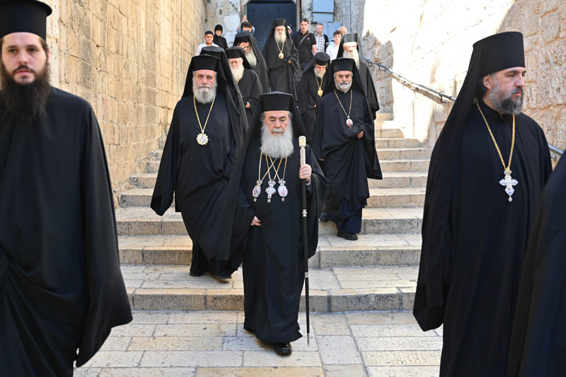 Ἅμα τῇ λήξει τῆς τελετῆς τῆς Ὑψώσεως, ἡ Πατριαρχική Συνοδεία ἀνῆλθεν εἰς τά Πατριαρχεῖα μετά πιστῶν, τούς ὁποίους προσεφώνησεν ὁ Μακαριώτατος ὡς ἕπεται: