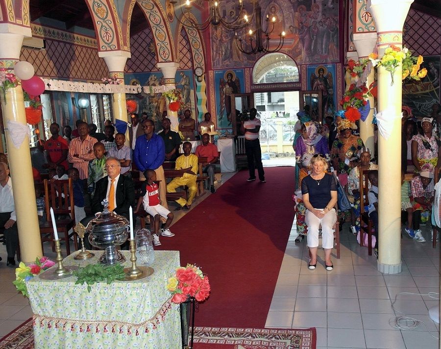 Ο Θεοφιλέστατος Επίσκοπος Μπραζαβίλ και Γκαμπόν κ. Παντελεήμων προεξήρχε της Αρχιερατικής Θείας Λειτουργίας των Θεοφανείων και της τελέσεως του Μεγάλου Αγιασμού στον Ιερό Ναό Αναστάσεως του Κυρίου Μπραζαβίλ, μετά το πέρας του οποίου προσέφερε ιερό Αρτοφόριο στον Ναό και απένειμε τιμητική πλακέττα στον συμπροσευχόμενο άμισθο Γενικό Πρόξενο της Ελλάδος στο Κονγκό, κ.Νικόλαο Περρή για την ουσιαστική συμβολή και πολύτιμη συνεισφορά του στην πρόοδο της τοπικής Εκκλησίας.
