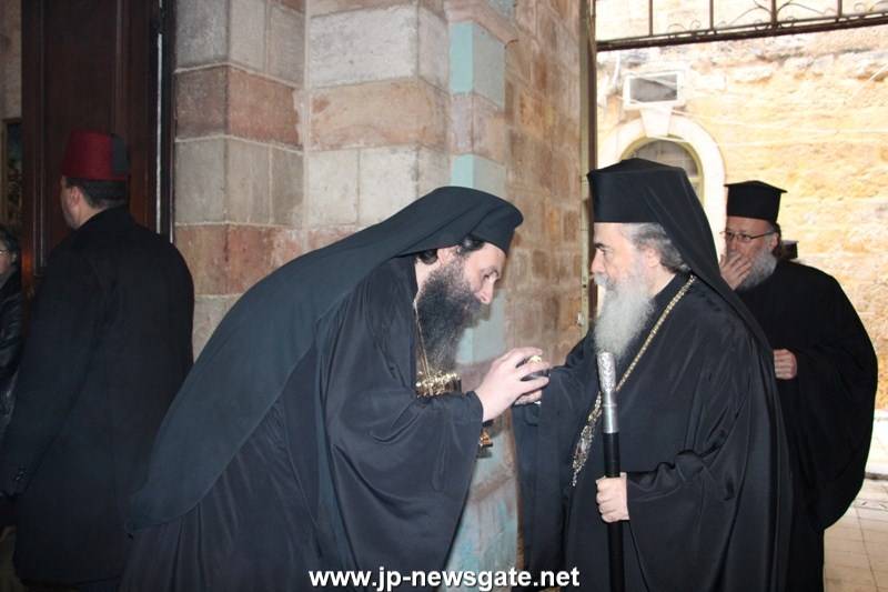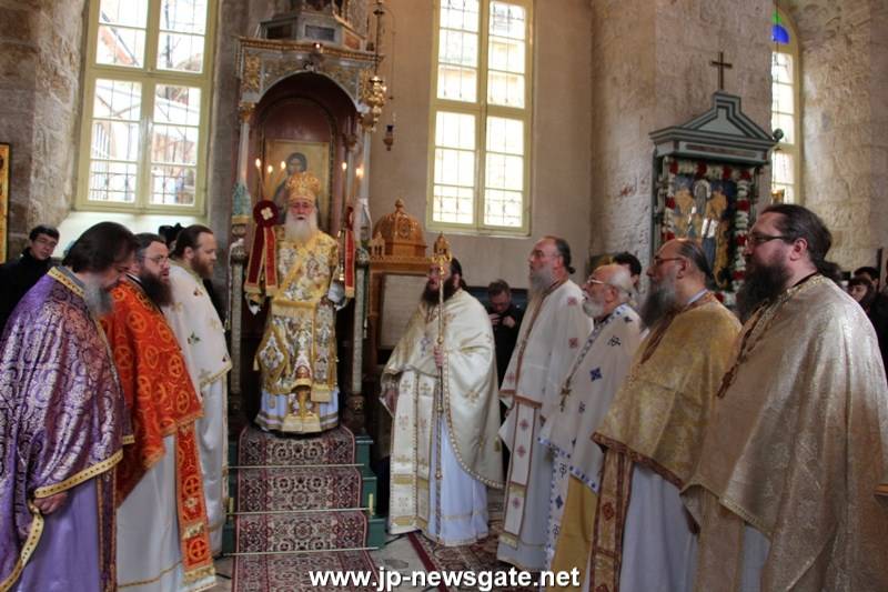 Διαρκούσης τῆς θείας Λειτουργίας προσῆλθε πρός προσκύνησιν ὁ Μακαριώτατος Πατήρ ἡμῶν καί Πατριάρχης Ἱεροσολύμων κ.κ. Θεόφιλος.