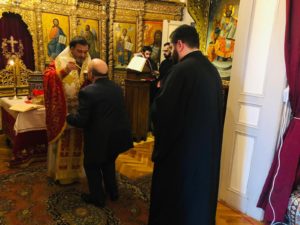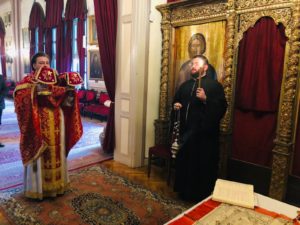 Με αφορμή την εορτή του Οσίου Κασσιανού του Ρωμαίου, κατά την οποία άγει τα ονομαστήριά του ο Καθηγούμενος, Θεοφιλέστατος Επίσκοπος Αραβισσού κ. Κασσιανός, τελέστηκε υπ’ αυτού στο παρακείμενο της Αίθουσας Τελετών της Σχολής παρεκκλήσιο της Παναγίας της Καμαριωτίσσης ο εόρτιος Όρθρος και η Θεία Λειτουργία.