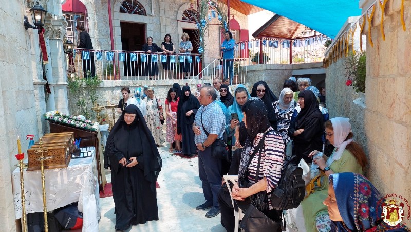 Εἰς τόν Ναόν τῆς Ἱερᾶς ταύτης Μονῆς προεξῆρξε τῆς θείας Λειτουργίας ἡ Α.Θ.Μ. ὁ Πατήρ ἡμῶν καί Πατριάρχης Ἱεροσολύμων κ.κ. Θεόφιλος, συλλειτουργούντων Αὐτῷ τοῦ Σεβασμιωτάτου Μητροπολίτου Καπιτωλιάδος κ. Ἡσυχίου, τοῦ Σεβασμιωτάτου Ἀρχιεπισκόπου Κωνσταντίνης κ. Ἀριστάρχου, τοῦ Σεβασμιωτάτου Ἀρχιεπισκόπου Καττάρων κ. Μακαρίου, ὅς καί εἶχε τελέσει τόν Ἑσπερινόν, Ἁγιοταφιτῶν Ἱερομονάχων καί διακόνων καί Ἱερέων ἐκ τῆς Ἱερᾶς Μητροπόλεως Πατρῶν, τοῦ Ἀρχιδιακόνου π. Μάρκου καί τοῦ Ἱεροδιακόνου π. Δοσιθέου, παρουσίᾳ τοῦ Γενικοῦ Προξένου τῆς Ἑλλάδος εἰς τά Ἱεροσόλυμα κ. Εὐαγγέλου Βλιώρα καί προσκυνητῶν.