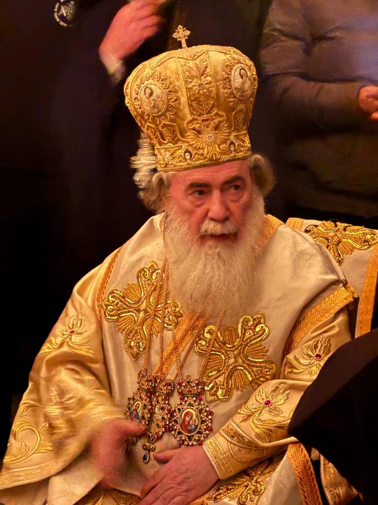 Διό καί ἡμεῖς, οἱ τιμῶντες σήμερον τήν σεπτήν τοῦ ἡγιασμένου Πατρός ἡμῶν Σάββα μνήμην παρακαλέσωμεν αὐτόν, ἵνα σύν ταῖς πρεσβείαις τῆς ὑπερευλογημένης Θεοτόκου καί ἀειπαρθένου Μαρίας, ἱκετεύῃ Κυρίῳ τῷ Θεῶ ἡμῶν ὑπέρ τῶν ψυχῶν ἡμῶν ὑπέρ εἰρήνης ἐν τῇ περιοχῇ ἡμῶν καί ὑπέρ τοῦ καταξιωθῆναι ἑορτάσαι τό μέγα καί ἄρρητον μυστήριον τῆς θείας Οἰκονομίας, τήν Γέννησιν τοῦ Θεοῦ καί Σωτῆρος ἡμῶν Χριστοῦ ἐν αὐτῷ τούτῳ τῷ σπηλαίῳ τῆς Βηθλεέμ.