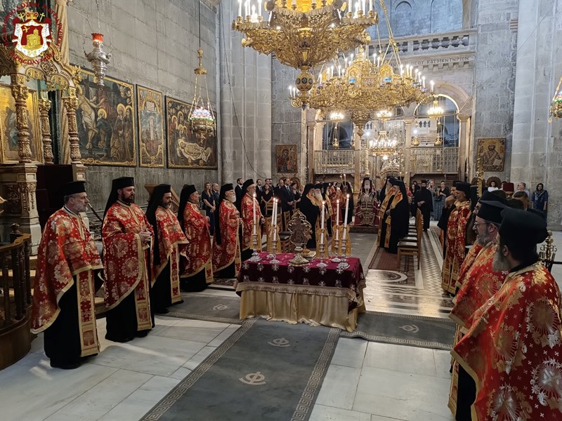 Πρός τοῦτο ἡ Μετριότης Ἡμῶν, συνοδευομένη ὑπό τῶν τιμίων μελῶν τῆς Γεραρᾶς Ἁγιοταφιτικῆς ἡμῶν Ἀδελφότητος ὡς καί εὐσεβοῦς λαοῦ, κατήλθομεν ἐν τῷ Πανιέρῳ Ναῷ τῆς Ἀναστάσεως, ἔνθα ἀνεπέμψαμεν εὐχαριστήριον δοξολογίαν τῷ Ἁγίῳ Τριαδικῷ Θεῷ «τῷ διδόντι ἡμῖν πίστιν διά τοῦ Κυρίου ἡμῶν Ἰησοῦ Χριστοῦ» (πρβλ. Α΄ Κορ. 15,57)˙ «καί αὕτη ἐστίν ἡ νίκη ἡ νικήσασα τόν κόσμον, ἡ πίστις ἡμῶν» (Α΄ Ἰω. 5,4) κατά τόν ἅγιον Ἰωάννην τόν Θεολόγον.