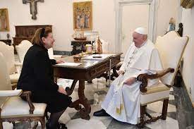 Δεκτή έγινε σήμερα η υπουργός Πολιτισμού & Αθλητισμού, Λίνα Μενδώνη, από τον Πάπα Φραγκίσκο στο Βατικανό. Η συνάντηση πραγματοποιήθηκε σε ιδιαίτερα θερμό κλίμα μετά από πρόσκλησή του ποντίφικά και, σύμφωνα με πληροφορίες, ήταν διάρκειας σαράντα πέντε λεπτών.