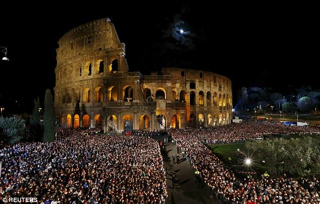 Το συγκεντρωμένο πλήθος στο Κολοσσαίο που παρακολούθησε την τελετή του Δρόμου του Σταυρού, την Μεγάλη Παρασκευή των Καθολικών, προσευχήθηκε σιωπηλά, υπέρ της ειρήνης σε όλο τον κόσμο.