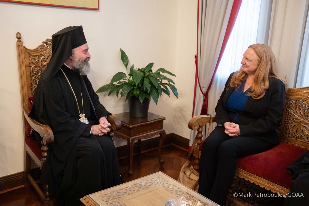 Ακολούθως μετέβη στο Αρχιεπισκοπικό Γραφείο, όπου είχε εγκάρδια συνάντηση με τον Σεβασμιώτατο Αρχιεπίσκοπο Αυστραλίας κ.κ. Μακάριο, την ευχή του οποίου ζήτησε και έλαβε ενόψει της ανάληψης των καθηκόντων της στην Πρεσβεία της Αυστραλίας στην Αθήνα. Ο Σεβασμιώτατος ευχήθηκε στη νέα Πρέσβη να έχει υγεία, δύναμη και επιτυχία στο πολυεύθυνο έργο που αναλαμβάνει.