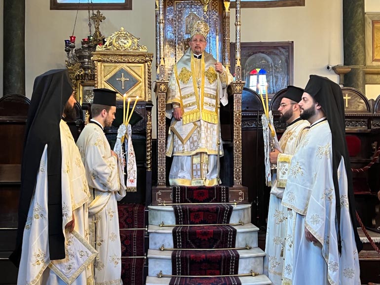 Ο ίδιος Αρχιερεύς χοροστάτησε στον Μ. Εσπερινό, την παραμονή της εορτής.