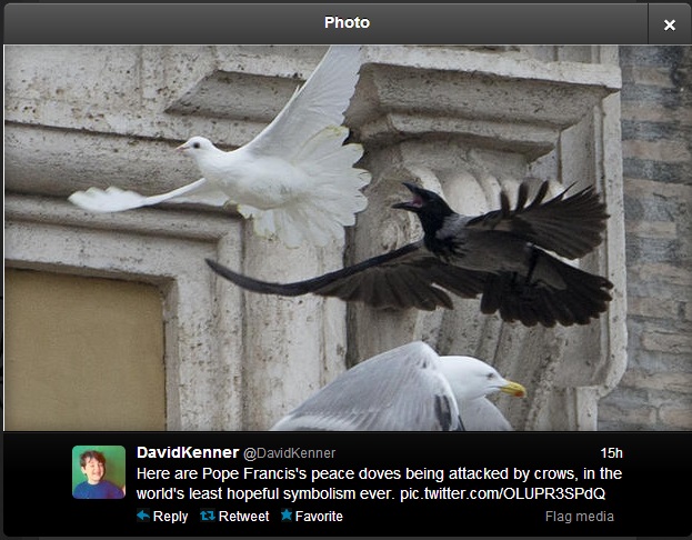 Δυο λευκά περιστέρια που άφησαν ένα αγόρι κι ένα κορίτσι μαζί με τον Πάπα, ως σύμβολα της ειρήνης, δέχθηκαν μια ανελέητη επίθεση από γλάρους και κοράκια.