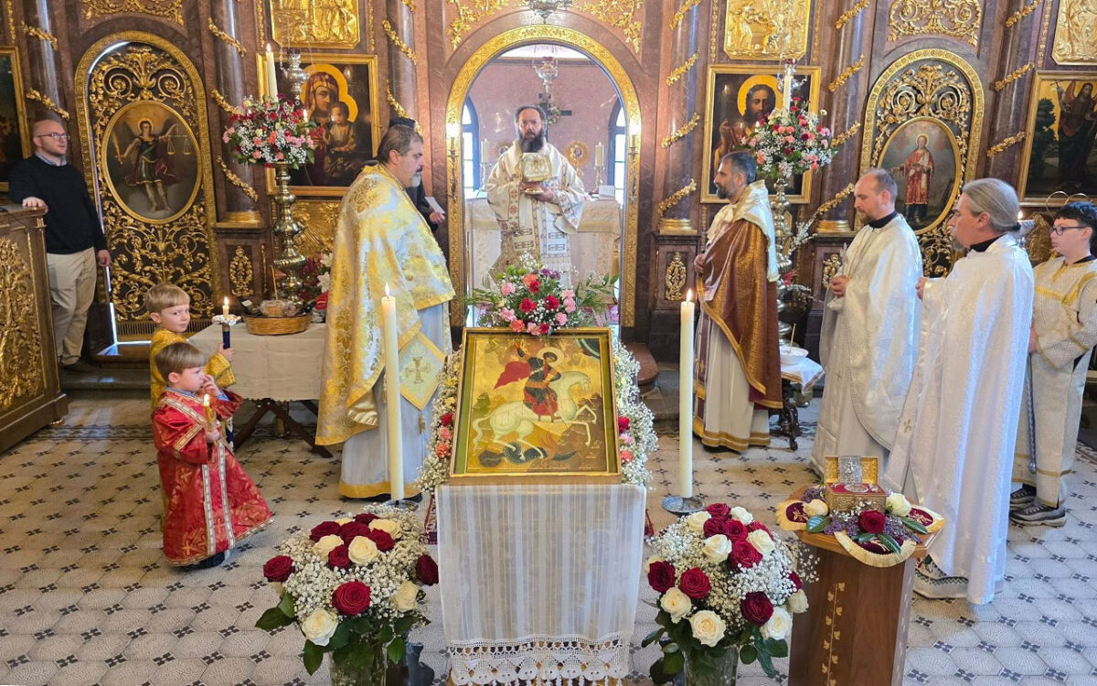 Της Δισαρχιερατικής Θείας Λειτουργίας προεξήρχε ο Σεβασμιώτατος Μητροπολίτης Αυστρίας και Έξαρχος Ουγγαρίας κ. Αρσένιος, συλλειτουργούντος του Θεοφιλεστάτου Επισκόπου Αρίστης κ. Μαξίμου. Τους αρχιερείς πλαισίωσαν λειτουργικά ο πρωτοπρεσβύτερος Ιωάννης Νικολίτσης, οι σταυροφόροι οικονόμοι Γεώργιος Strugov και Αριστείδης Γανώσης, καθώς και ο π. Σέργιος. Στο τέλος της Λειτουργίας τελέστηκε αρτοκλασία με προσφορές των ενοριτών.