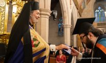Στη συνέχεια πέρασαν στον Ιερό Ναό της Αγίας Τριάδας, όπου χοροστάτησε ο Οικουμενικός Πατριάρχης Βαρθολομαίος. Άλλωστε σήμερα είναι η γιορτή του Αγίου Φωτίου, Πατριάρχη Κωνσταντινουπόλεως.