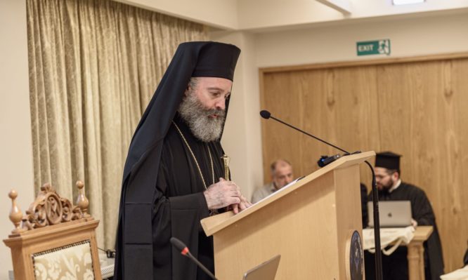 Ακολούθησε η εισαγωγική ομιλία του Σεβασμιωτάτου Αρχιεπισκόπου Αυστραλίας κ. Μακαρίου, στην οποία, αφού έγινε αναφορά στην ιστορία της Βιοηθικής, στη σύσταση και τη δράση των επιτροπών Βιοηθικής στον Ορθόδοξο χώρο και ειδικότερα στο Οικουμενικό Πατριαρχείο,παρουσιάστηκε η έννοια του δικαιώματος μεταξύ «δικαιωμάτων του Θεού» και «δικαιωμάτων του ανθρώπου»και η σημασία της ορθής κατανόησης και έκφρασης της ευθύνης του ανθρώπου, ως συνυπευθυνότητας, για την αντιμετώπιση των συγχρόνων βιοηθικών διλημμάτων, με βάση την αρχή του απολύτου σεβασμού της ιερότητος του ανθρωπίνου προσώπου.