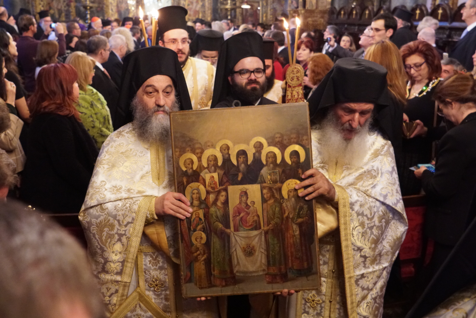 Μετα το τέλος της θείας Λειτουργίας έλαβε χώρα η καθιερωμένη λιτάνευσις των ιερών εικόνων επι τη εορταζομένη αναστηλώσει αυτών.