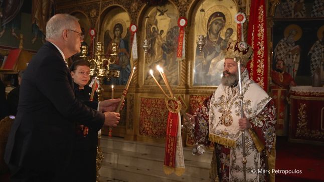 Κατόπιν, ο Σεβασμιώτατος, αφού ευχαρίστησε θερμά για την τιμητική παρουσία τους τον Αυστραλό Πρωθυπουργόκαι την Ελληνίδα Υπουργό Πολιτισμού, ευχήθηκε σε όλουςχρόνια πολλά, φωτοφόρα και χαρούμενα. «Ο Θεός να ευλογεί τις οικογένειές σας. Ο Θεός να ευλογεί τους νέους μας. Ο Θεός να ευλογεί τον Ελληνισμό της πέμπτης ηπείρου», ανέφερε, μεταξύ άλλων, απευθυνόμενος στους πιστούς, και αναφώνησε μαζί τους: «Ζήτω η Ελλάδα! Ζήτω η Αυστραλία! Ζήτω η Εκκλησία μας!».