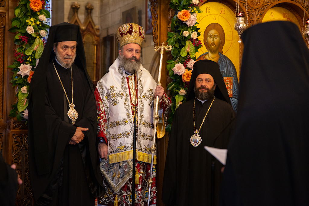 Προ της Απολύσεως της Θείας Λειτουργίας, με βαθειά συγκίνηση, ο Θεοφιλέστατος Επίσκοπος Σινώπης κ. Σιλουανός, ο οποίος έλαβε τη χάρη της Αρχιεροσύνης πριν από ακριβώς τρία έτη, στον ίδιο Ιερό Ναό, απηύθυνε εγκάρδιες ευχές και λόγους ευγνωμοσύνης προς τον Σεβασμιώτατο Αρχιεπίσκοπο κ.κ. Μακάριο, εκ μέρους όλων των βοηθών Επισκόπων της Ιεράς Αρχιεπισκοπής Αυστραλίας.