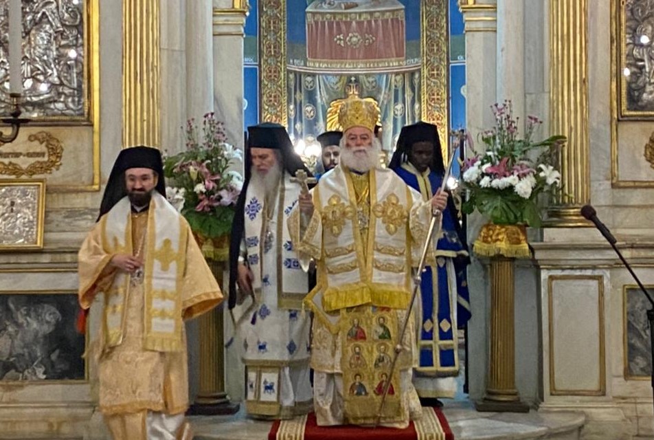 Ο Μακαριώτατος Πατριάρχης Αλεξανδρείας και Πάσης Αφρικής Θεόδωρος Β’ προεξήρχε της Θείας Λειτουργίας που τελέστηκε στον πανηγυρίζοντα Ιερό Ναό του Ευαγγελισμού της Θεοτόκου. Στην Θ. Λειτουργία παρευρέθηκαν ο Γενικός Πρόξενος της Ελλάδος στην Αλεξάνδρεια κ. Αθανάσιος Κοτσιώνης, ο Πρόεδρος της Ελληνικής Κοινότητας Αλεξανδρείας κ. Ιωάννης Σιόκας, ο Α΄Αντιπρόεδρος της Ελληνικής Κοινότητας Αλεξανδρείας κ. Ανδρέας Βαφειάδηςο Πλοίαρχος του Ελληνικού Πολεμικού Ναυτικού κ. Κωνσταντίνος Βαρουξής, Σύνδεσμος του Ελληνικού με το Αιγυπτιακό Πολεμικό Ναυτικό, η κα Λιλίκα Θλιβίτη, Πρόεδρος του Συλλόγου Ελλήνων Επιστημόνων «Πτολεμαίος Α’» και του Ελληνικού Ναυτικού Ομίλου Αλεξανδρείας.