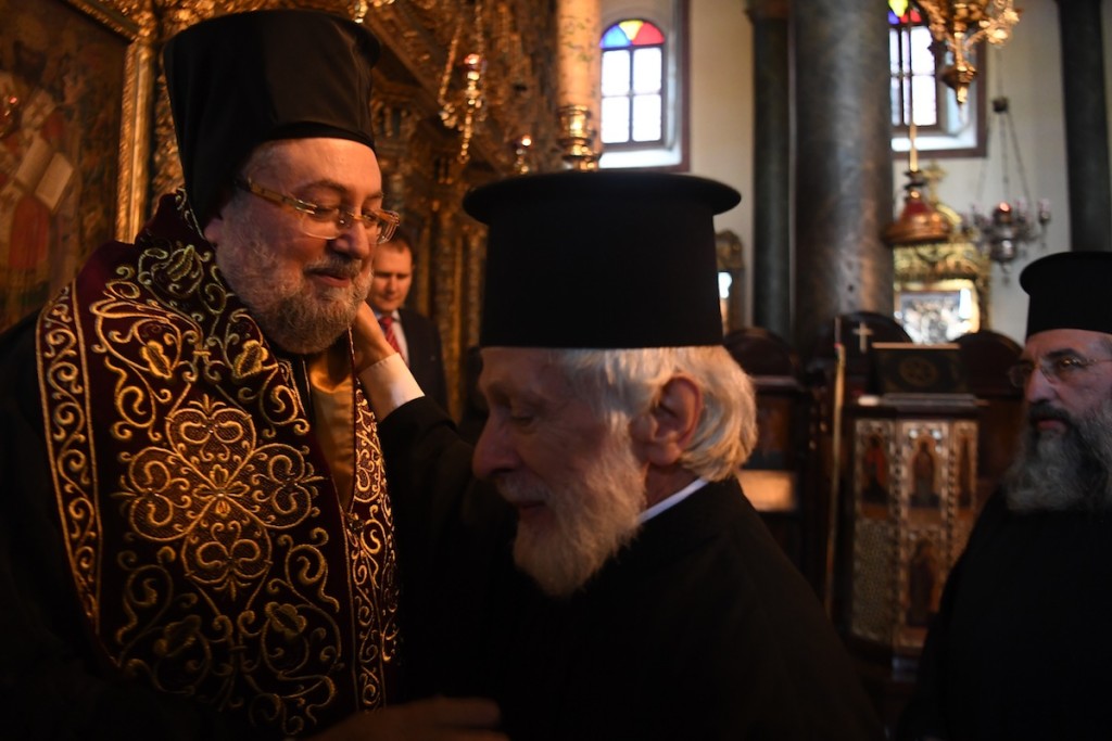 Ταυτοχρόνως, η Ιερά αυτή Μητρόπολις εν τω προσώπω υμών ανυψώθη εις Γεροντικήν διά να τιμηθεί η υμετέρα Ιερότης, εις αδελφός εκ της πρεσβυτέρας Ιεραρχίας, ο οποίος ελευκάνθη εν τη διακονία της Μητρός Εκκλησίας και προσέφερεν αυτή πολυτίμους υπηρεσίας εν τε τω Ιερώ τούτω Κέντρω και κατά διαφόρους εις το εξωτερικόν αποστολάς.