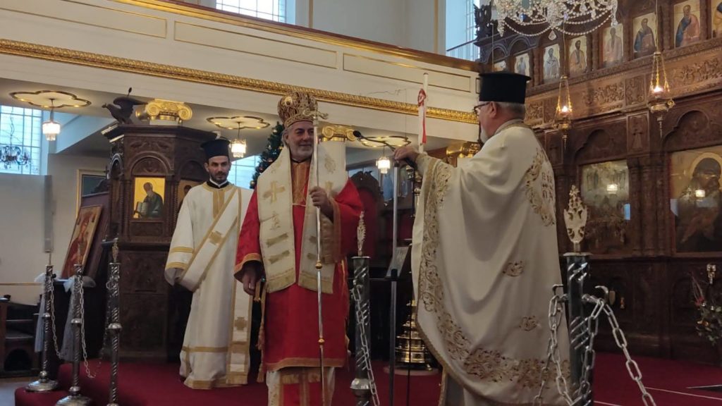 Στον Ιερό Καθεδρικό Ναό των Αγίων Πάντων Camden Town λειτούργησε ο Σεβασμιώτατος Αρχιεπίσκοπος Θυατείρων και Μεγάλης Βρετανίας κ. Νικήτας, την Κυριακή προ των Χριστουγέννων. Ο Σεβασμιώτατος, μετά το πέρας της Θείας Λειτουργίας, παρουσίασε στους πιστούς τον νέο Διάκονο που θα υπηρετεί στον Ι. Ναό, π. Κωνσταντίνο Μαμούρη, στον οποίο ευχήθηκε ευλογημένη διακονία, δύναμη και υπομονή.