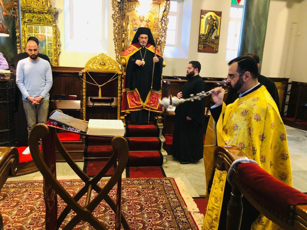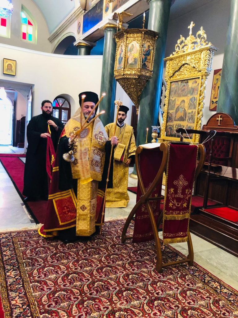 Στην Ακολουθία χοροστάτησε ο Επίσκοπος Αραβισσού κ. Κασσιανός, ο οποίος ανέγνωσε κατά σειρά, πρώτος, την Α’ Στάση του Χαιρετιστήριου Κανόνα προς την Υπεραγία Θεοτόκο.