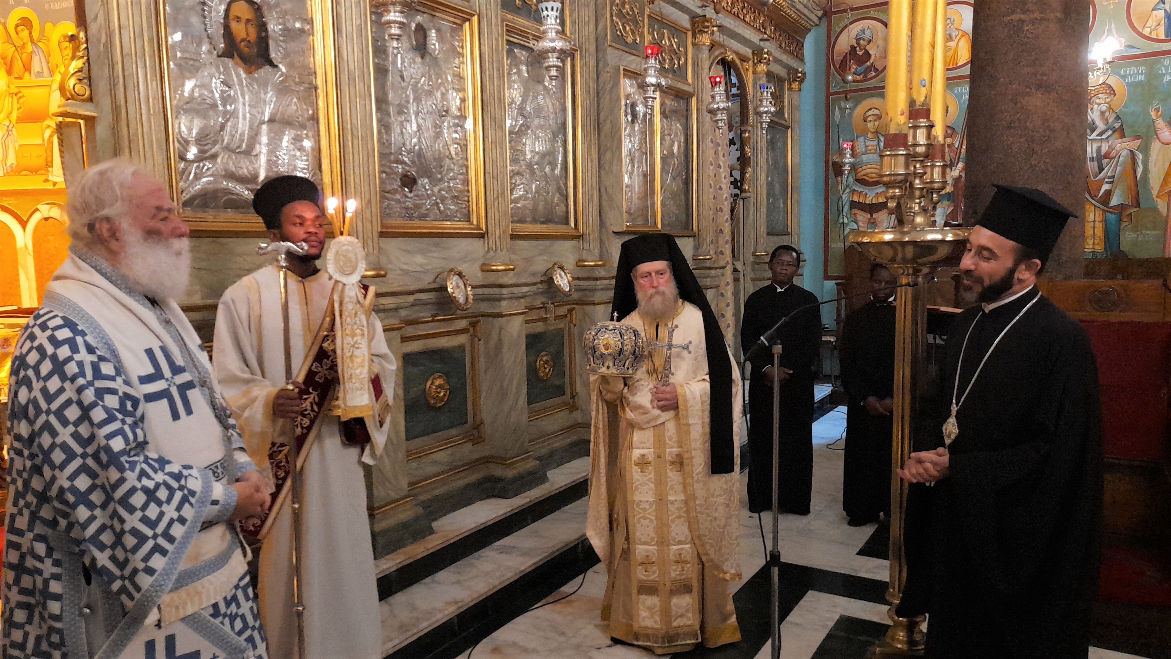 Απευθυνόμενος στον νέο μοναχό της Αγιοσαββαϊτικης Αδελφότητος, ο Πατριάρχης ετόνισε ότι το όνομα Χριστοφόρος έφεραν τρεις διακεκριμένες προσωπικότητες συνδεόμενες πνευματικώς μεταξύ τους, ο μακαριστός Αγιοταφίτης Πατριάρχης Αλεξανδρείας κυρός Χριστοφόρος (1937-1967), ο πρώτος Αφρικανός επίσκοπος στην Ουγκάντα, Νειλουπόλεως κυρός Χριστοφόρος (Σπάρτας) και ο αείμνηστος Επισκόπος Τελμησού Χριστοφόρος.