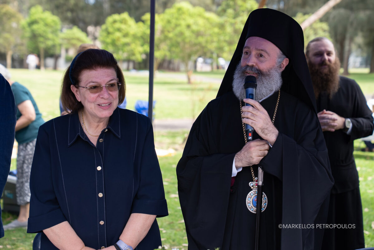 Στην εκδήλωση, η οποία πραγματοποιήθηκε στο Πάρκο Gough Whitlam στο προάστιο Earlwood του Σύδνεϋ, την κ. Μενδώνη συνόδευσε ο Σεβασμιώτατος Αρχιεπίσκοπος Αυστραλίας κ.κ. Μακάριος.