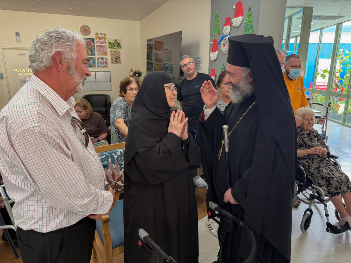 Το Σάββατο, 14 Δεκεμβρίου, ο Σεβασμιώτατος Αρχιεπίσκοπος Αυστραλίας κ.κ. Μακάριος, ο οποίος πραγματοποιεί ποιμαντική επίσκεψη στη Μελβούρνη και, συγκεκριμένα, στην Ιερά Επισκοπή Χώρας, βρέθηκε κοντά σε ηλικιωμένους ομογενείς στη Μονάδα Φροντίδας τρίτης ηλικίας «Βασιλειάδα», στο προάστιο Fawkner. Ο Σεβασμιώτατος συμμετείχε για πρώτη φορά σε χριστουγεννιάτικη εκδήλωση της Μονάδας και είχε την ευκαιρία να επικοινωνήσει με τους ενοίκους και το προσωπικό της, και να τους ευχηθεί εκ του σύνεγγυς για τις επερχόμενες άγιες ημέρες του Δωδεκαημέρου.