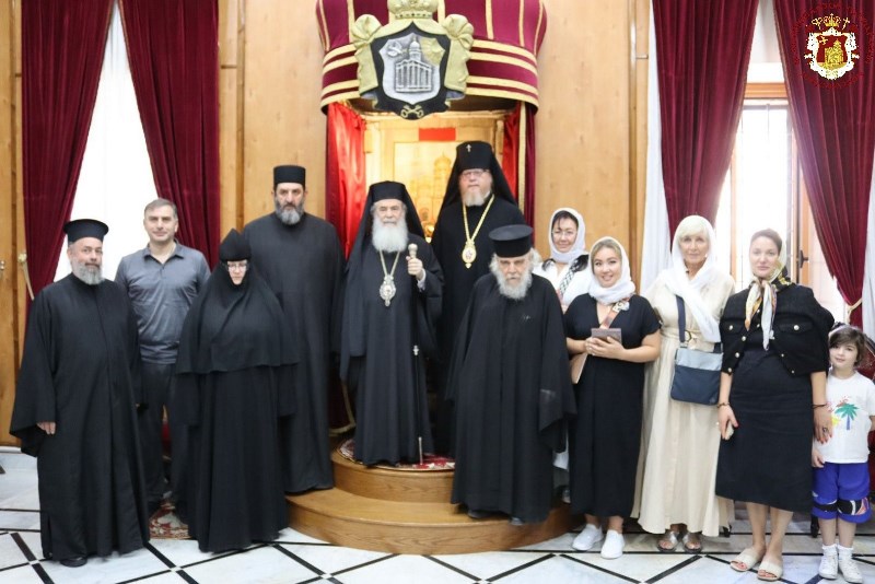 Α. Τήν Τετάρτην, 7ην /20ήν Σεπτεμβρίου 2023, ὁ Σεβασμιώτατος Ἀρχιεπίσκοπος τῆς Ἱερᾶς Ἀρχιεπισκοπῆς Ρούζα τοῦ Πατριαρχείου Μόσχας, ὑπηρετήσας εἰς τό παρελθόν ὡς Προϊστάμενος τῆς Ρωσικῆς Ἀποστολῆς ἐν Ἱεροσολύμοις (MISSIA) κ. Τύχων μετά τοῦ Ἀντιπροσώπου τῆς MISSIA Ἀρχιμανδρίτου π. Δομετιανοῦ καί μικρᾶς ὁμάδος κληρικῶν καί προσκυνητῶν ἐπεσκέφθησαν τό Πατριαρχεῖον.