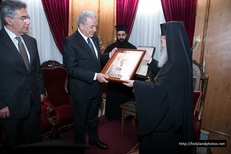 Απ τη μεριά του ο κ. Θεόφιλος είπε : «Με χαράν Σας υποδεχόμεθα ως της χώρας μας Ελλάδος ως προστάτιδος του Πατριαρχείου, των Ρωμαίων Ορθοδόξων (Rum Orthodox) εις Ισραήλ, Παλαιστινιακήν Αυτονομίαν, Ιορδανίαν και Κατάρ. Μία τοιαύτη θέσις της Ελλάδος επετεύχθη χάρις εις τας ενέργειας του μακαριστού Πατριάρχου Ιεροσολύμων Βενεδίκτου. Η θέσις των Χριστιανών εις την Μέσην Ανατολήν ως θρησκευτικής οντότητος είναι κρίσιμος. Ο ρόλος του Πατριαρχείου δι’ αυτούς και διά το μέλλον των Ιεροσολύμων είναι λίαν σημαντικός. Το Πατριαρχείον διατηρεί το θρησκευτικόν καί πολιτικόν καθεστώς των Ιεροσολύμων. Τα προσκυνήματα ευρίσκονται εις το επίκεντρον του διεθνούς ενδιαφέροντος».