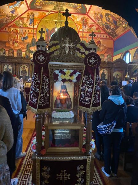 Στην Κυριακάτικη Δισαρχιερατική Θεία Λειτουργία μαζί με τον Θεοφιλέστατο Επίσκοπο Αριανζού κ. Βαρθολομαίο και ιερείς από γειτονικές ενορίες, συμμετείχε πλήθος πιστών ομογενών για να ευχαριστήσουν τον Θεό που ενεργεί δι΄ ευχών του Οσίου Γεωργίου Καρσλίδη στην ενορία τους.