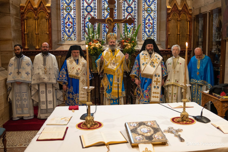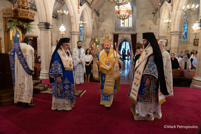 Επίκεντρο των λατρευτικών εκδηλώσεων ήταν ο ομώνυμος Ιερός Καθεδρικός Ναός, στον οποίο τελέστηκε Πανηγυρική Τρισαρχιερατική Θεία Λειτουργία, προεξάρχοντος του Σεβασμιωτάτου Αρχιεπισκόπου Αυστραλίας κ.κ. Μακαρίου, περιστοιχούμενου από τους Θεοφιλεστάτους Επισκόπους Μιλητουπόλεως κ. Ιάκωβο και Χαριουπόλεως κ. Βαρθολομαίο, τον Πρωτοσύγκελλο της Ιεράς Αρχιεπισκοπής και Ιερατικώς Προϊστάμενο του Καθεδρικού Ναού, Πανοσιολογιώτατο Αρχιμανδρίτη του Οικουμενικού Θρόνου κ. Χριστοφόρο Κρικέλη, και από πολλούς ιερείς της πόλεως του Σύδνεϋ.