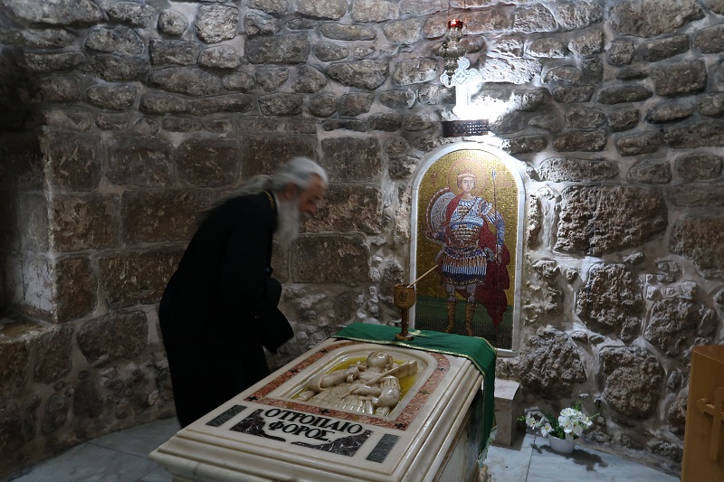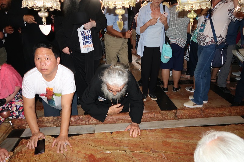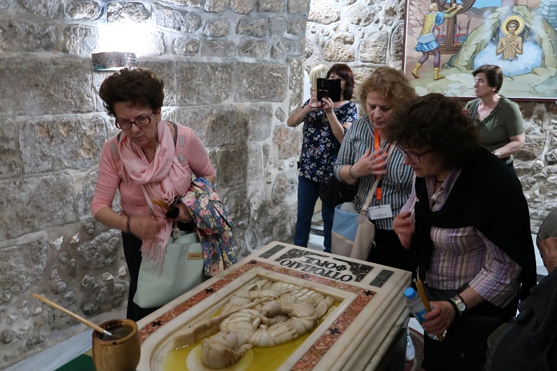 Τους προσκυνητές συνόδευε και ο τ. Πρωτοσύγκελος της Ιεράς Μητροπόλεώς μας και νυν Πατριαρχικός Επίτροπος Ιορδανίας Πανοσιολ. Αρχιμ. π. Ραφαήλ Γρίβας, ο οποίος τους ξενάγησε λεπτομερώς στο σπήλαιο της Βηθλεέμ, όπου και ανέγνωσε το Ιερό Ευαγγέλιο της Γεννήσεως του Χριστού.