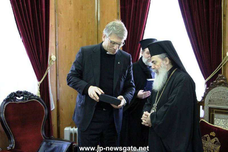 Τον Γενικόν Γραμματέα του Παγκόσμιου Συμβουλίου Εκκλησιών κ. Tveit εδέχθη η Α.Θ.Μ. ο Πατήρ ημών και Πατριάρχης Ιεροσολύμων κ.κ. Θεόφιλος μετά Πατέρων Αγιοταφιτών.