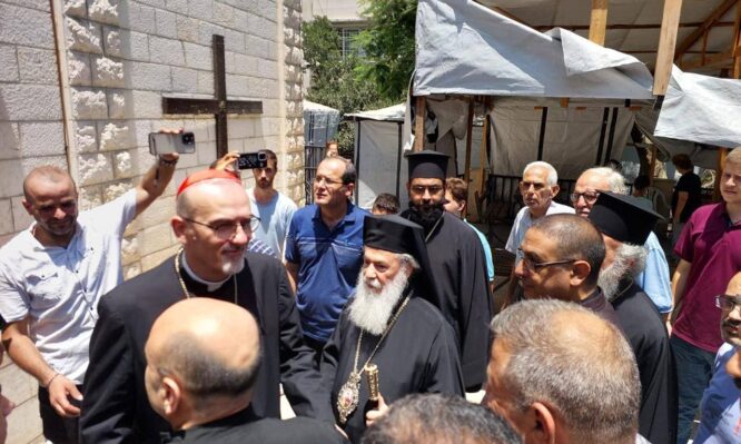 Ο Ιεροσολύμων Θεόφιλος και ο Λατίνος Πατριάρχης Πιτσαμπάλα στη Γάζα – Κραυγή πίστης και ελπίδας μέσα στην καταστροφή- Φωτο