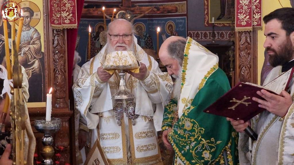 Μετά τό πέρας τῆς θείας Λειτουργίας ἠκολούθησε κέρασμα καί ἑόρτιος τράπεζα ὑπό τῆς Κοινότητος. Ἐν αὐτῇ προσεφώνησε καί πάλιν ὁ Μακαριώτατος ὡς ἕπεται: