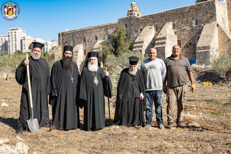Τήν Δευτέραν, 19ην Νοεμβρίου / 2ραν Δεκεμβρίου 2024, ὁ Μακαριώτατος Πατήρ ἡμῶν καί Πατριάρχης Ἱεροσολύμων κ.κ. Θεόφιλος ἐφύτευσεν εἰς τόν ἐξωτερικόν περίβολον τῆς Ἱερᾶς Μονῆς τοῦ Τιμίου Σταυροῦ τό πρῶτον ἐλαιόδενδρον ἐκ τῶν ἑκατόν φυτευθησομένων εἰς τήν Ἱεράν ταύτην Μονήν παρουσίᾳ τοῦ Γέροντος Ἀρχιγραμματέως Σεβασμιωτάτου Ἀρχιεπισκόπου Κωνσταντίνης κ. Ἀριστάρχου, τοῦ Ἡγουμένου τῆς Μονῆς Ἀρχιμανδρίτου π. Χριστοδούλου, τοῦ Ἀρχιδιακόνου π. Μάρκου καί τοῦ Ἐπιστάτου τοῦ κτήματος τῆς Μονῆς τοῦ Σταυροῦ.