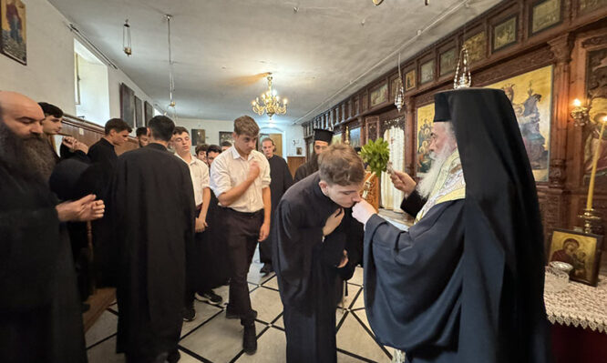 Τήν πρωϊνήν ὥραν τῆς Δευτέρας, 3ης/ 16ης Σεπτεμβρίου 2024, ἡ Α.Θ.Μ. ὁ Πατήρ ἡμῶν καί Πατριάρχης Ἱεροσολύμων κ.κ. Θεόφιλος ἐτέλεσε τήν τελετήν τοῦ Ἁγιασμοῦ τοῦ ὕδατος εἰς τόν Ἱερόν Ναόν τῆς Ἁγίας Τριάδος τῆς Πατριαρχικῆς Σχολῆς τῆς Ἁγίας Σιών διά τήν εὐλογίαν τοῦ Νέου Σχολικοῦ Ἔτους 2024-2025.