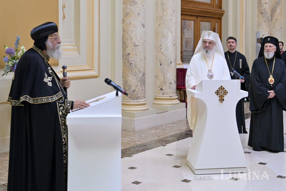 Κατά τη διάρκεια της υποδοχής, ο Πατριάρχης Ρουμανίας απευθύνθηκε θερμά στους επισκέπτες από την Αίγυπτο, τονίζοντας την ιστορικά θετική σχέση μεταξύ της Κοπτικής και της Ρουμανικής Ορθόδοξης Εκκλησίας.