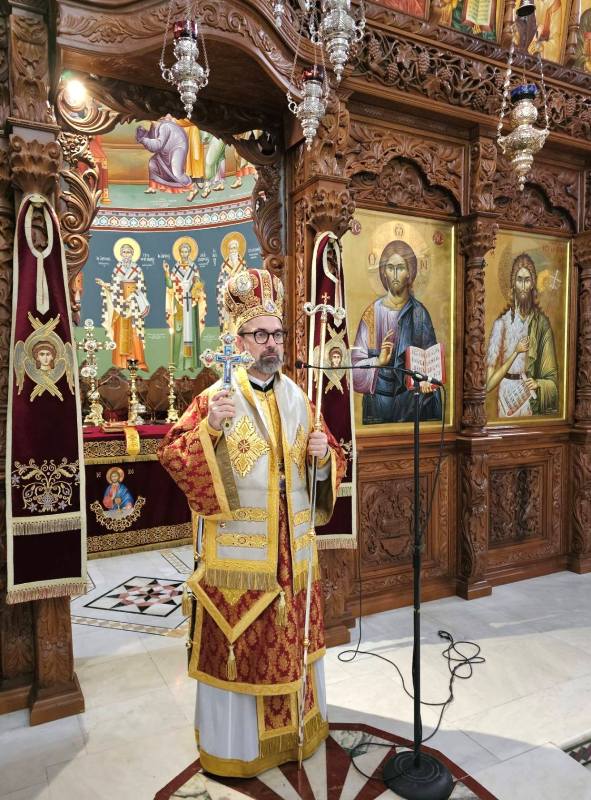 Την Κυριακή Ε΄ των Νηστείων προεξήρχε της Θείας Λειτουργίας, όπου κήρυξε και τον θείο Λόγο, με κύριο θέμα την μεγάλη μετάνοια της οσίας Μαρίας της Αιγυπτίας. Μετάνοια που πρέπει να χαρακτηρίζει τον κάθε Χριστιανό. Στο τέλος ευχαρίστησε τον Μητροπολίτη μας για την άδεια να λειτουργήσει στην επαρχία αυτού και ευχήθηκε στο πολυπληθές εκκλησίασμα καλή Ανάσταση.