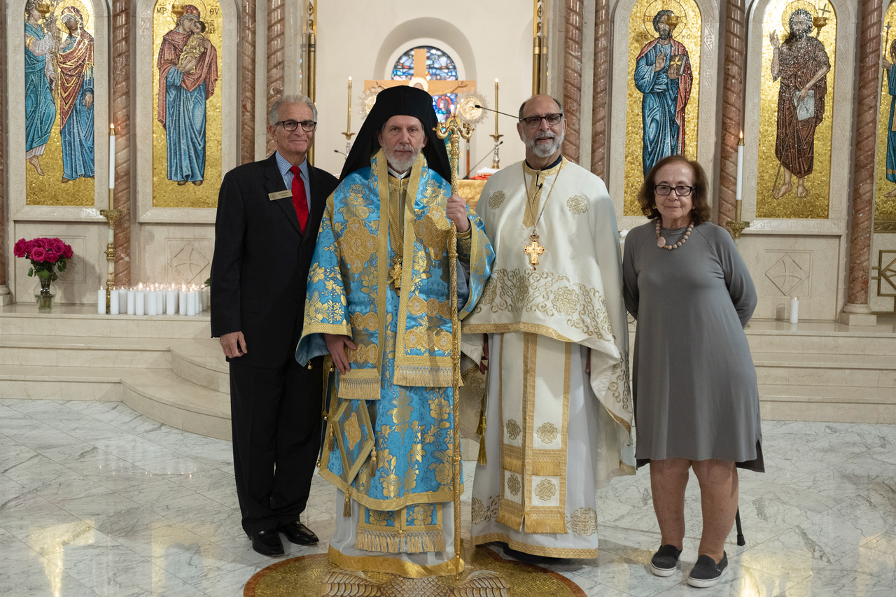 Ακολούθησε δεξίωση στις εγκαταστάσεις του ναού, την οποία προσέφεραν ευγενώς η Φιλόπτωχος Αδελφότης Κυριών και το εκκλησιαστικό συμβούλιο του ναού.